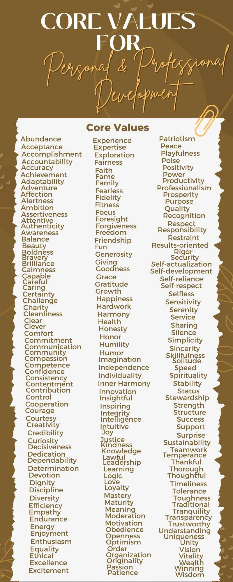 Defining Your Path: A Comprehensive List of 192 Core Values